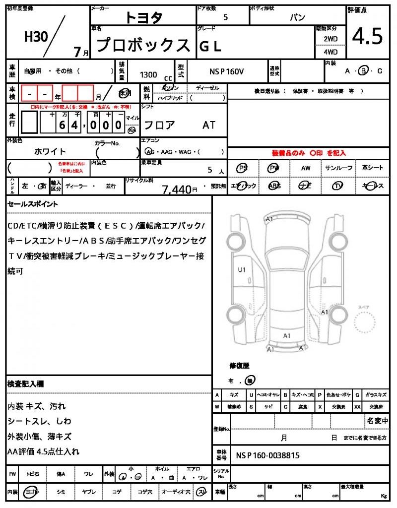 VIN/Serial No. | NSP160-0038815 |