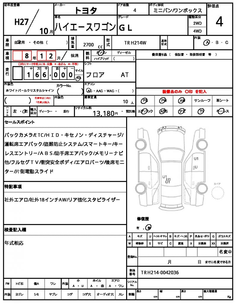 VIN/Serial No. | TRH214-0042036 |