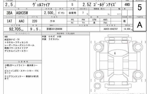VIN/Serial No. | AGH35-0042787 |