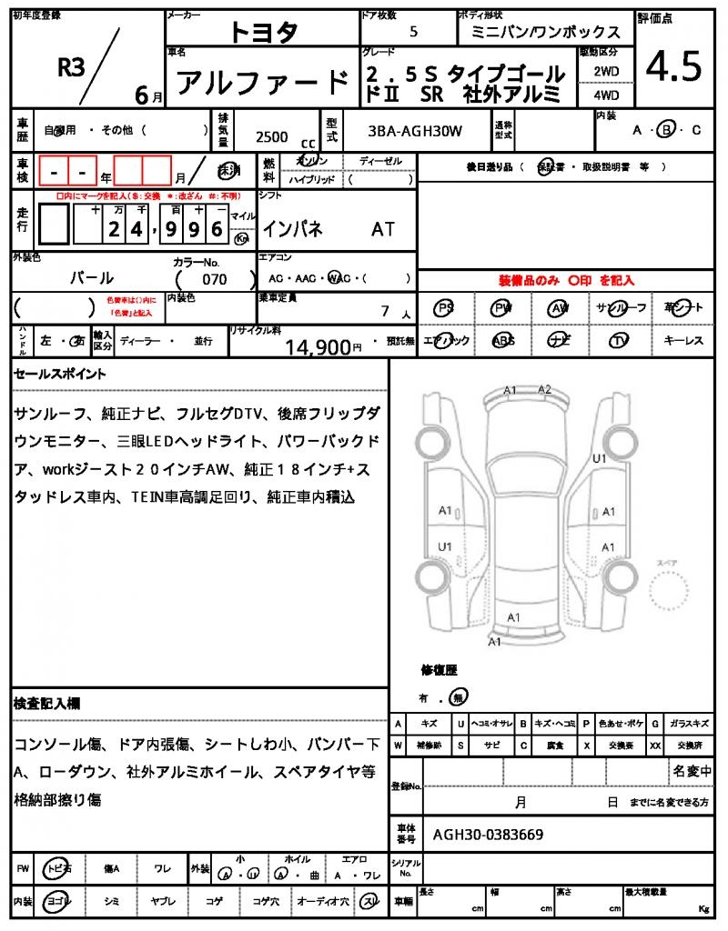 Model code | 3BA-AGH30W |