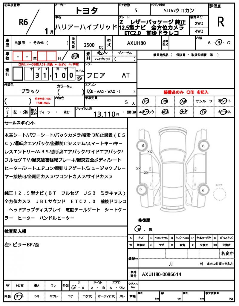 VIN/Serial No. | AXUH80-0086614 |