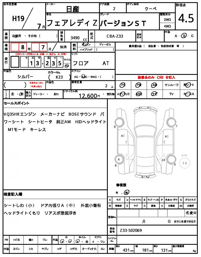 VIN/Serial No. | Z33-502069 |