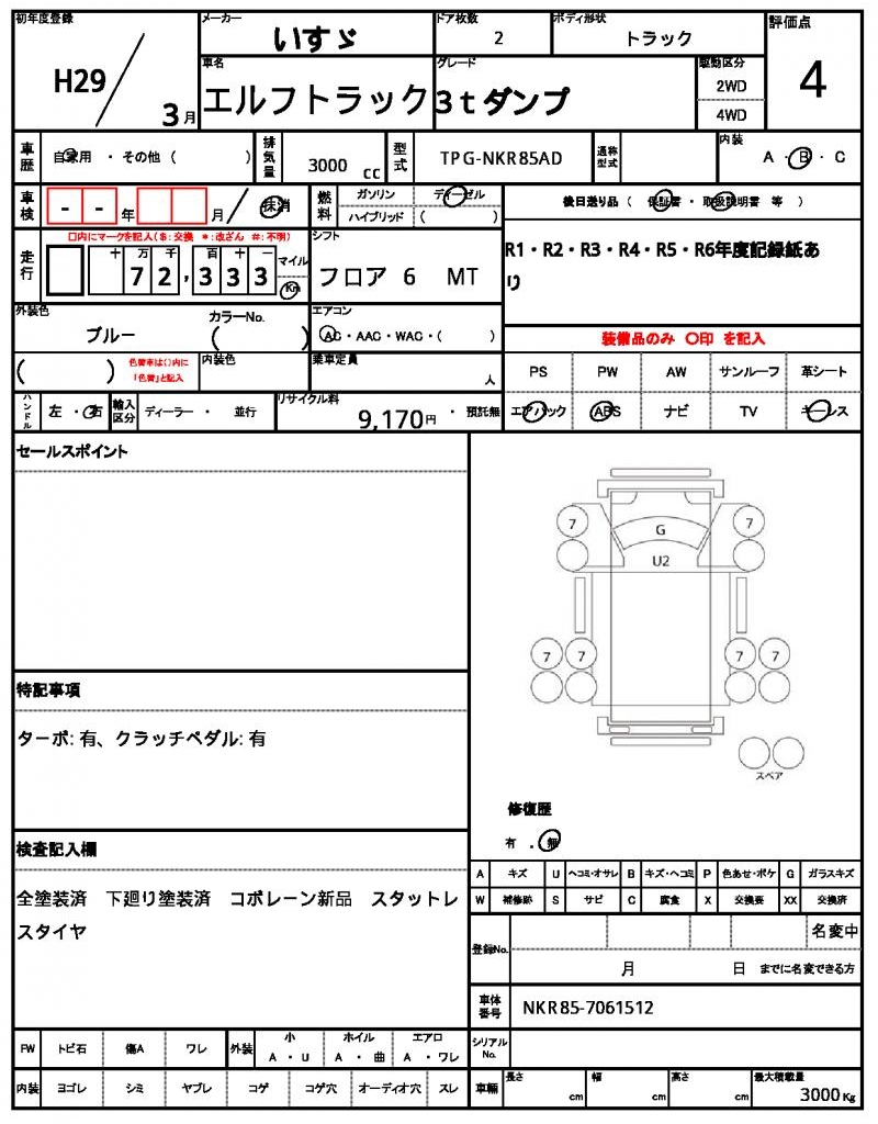 VIN/Serial No. | NKR85-7061512 |