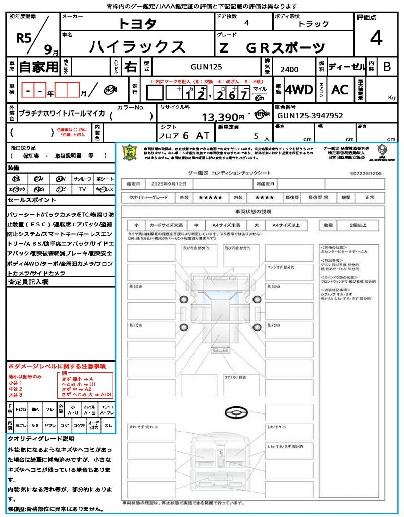 VIN/Serial No. | GUN125-3947952 |