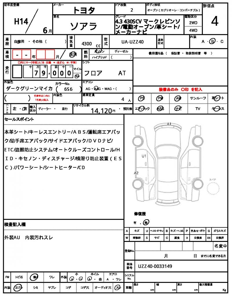 VIN/Serial No. | UZZ40-0033149 |
