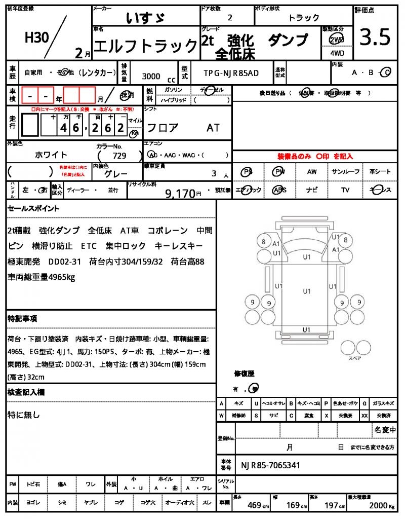VIN/Serial No. | NJR85-7065341 |