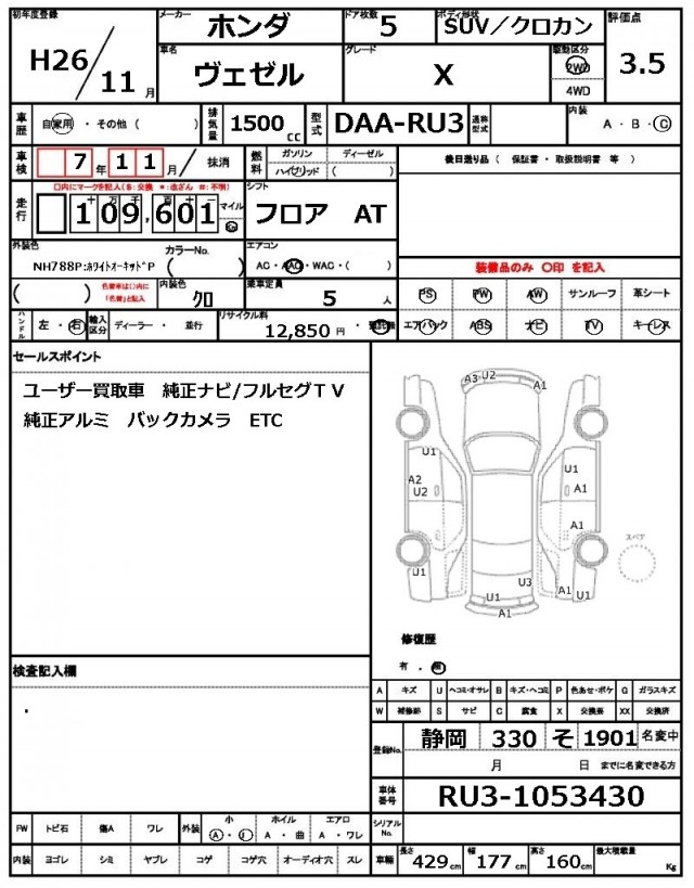 VIN/Serial No. | RU3-1053430 |
