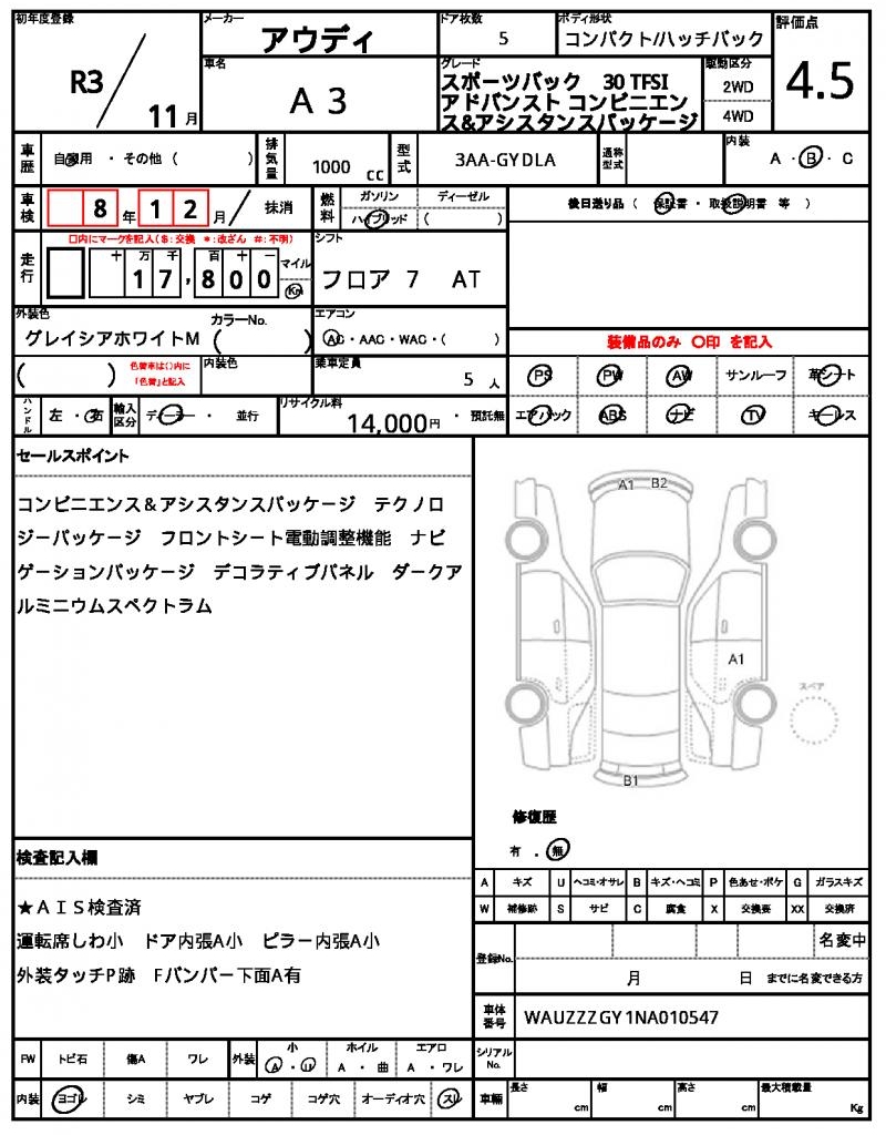 VIN/Serial No. | WAUZZZGY1NA010547 |