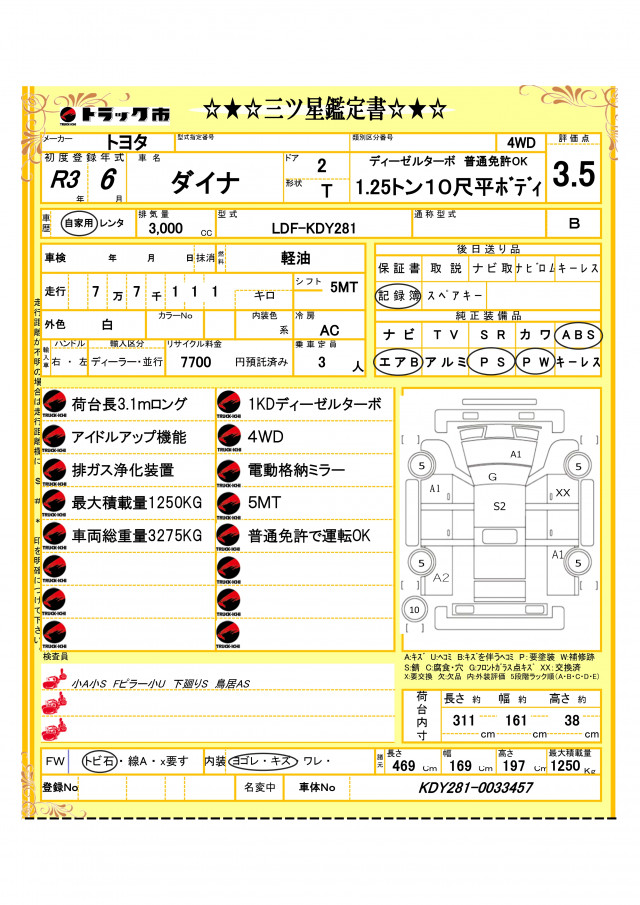 VIN/Serial No. | KDY281-0033457 |