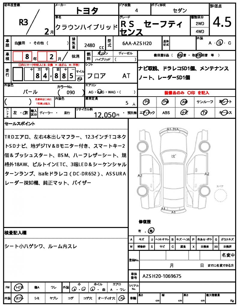 VIN/Serial No. | AZSH20-1069675 |