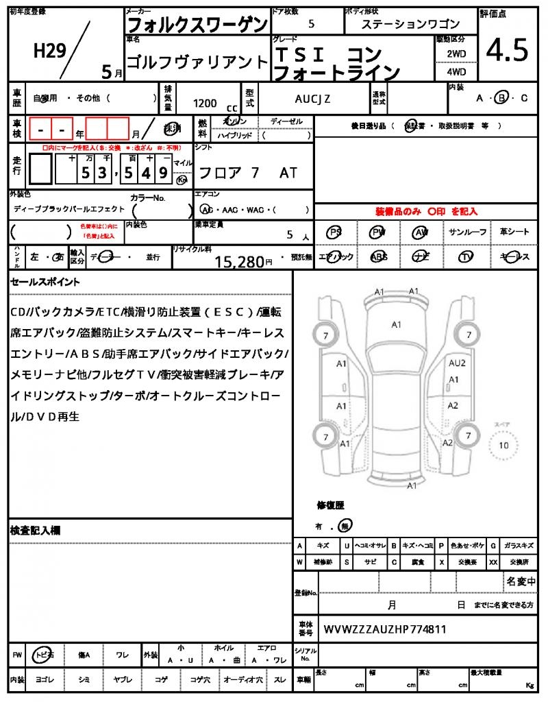 VIN/Serial No. | WVWZZZAUZHP774811 |