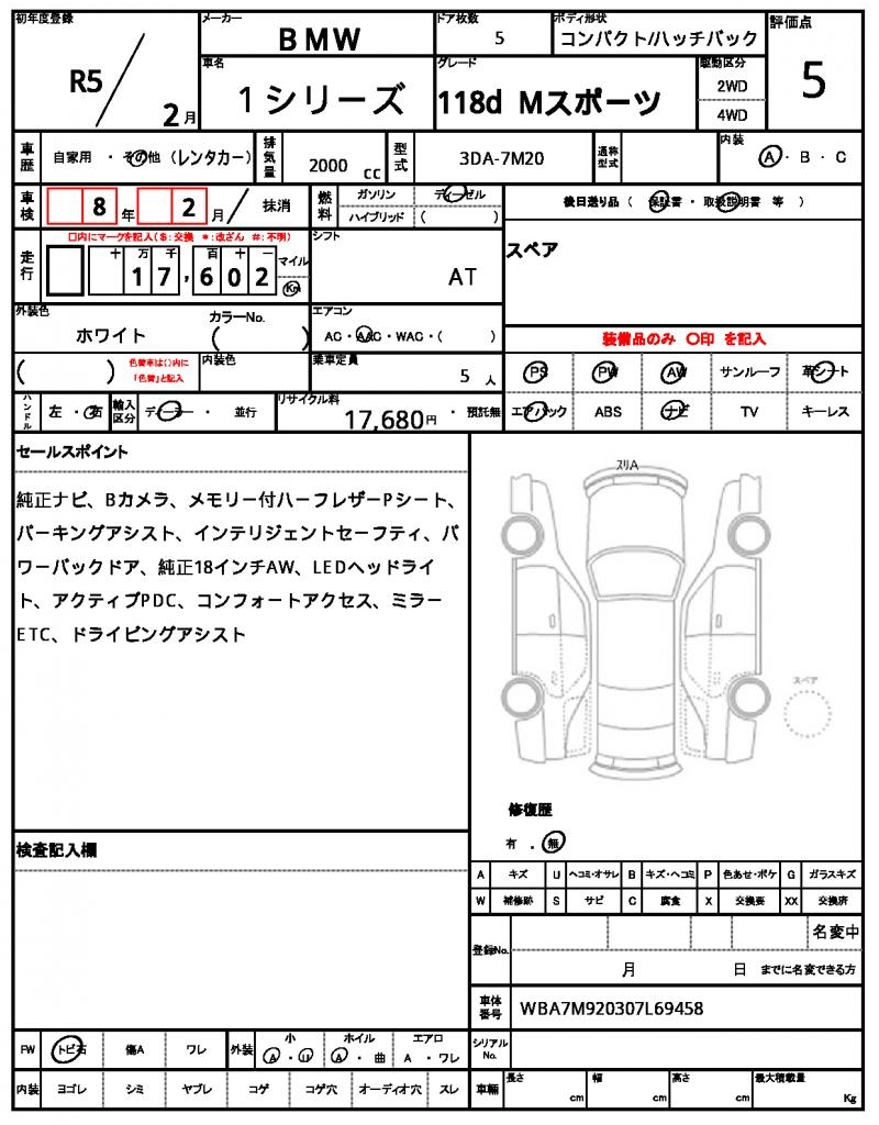VIN/Serial No. | WBA7M920307L69458 |