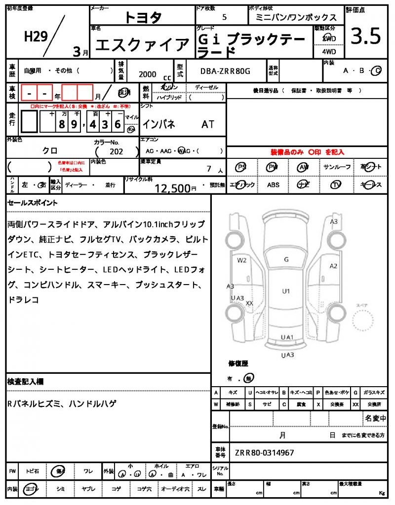 Model code | DBA-ZRR80G |