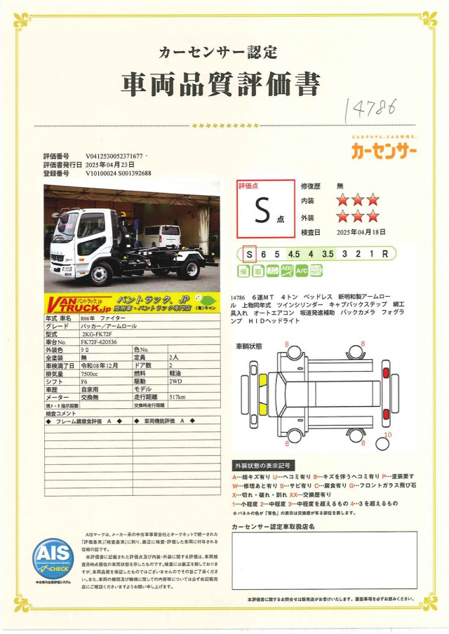 VIN/Serial No. | FK72F-620536 |