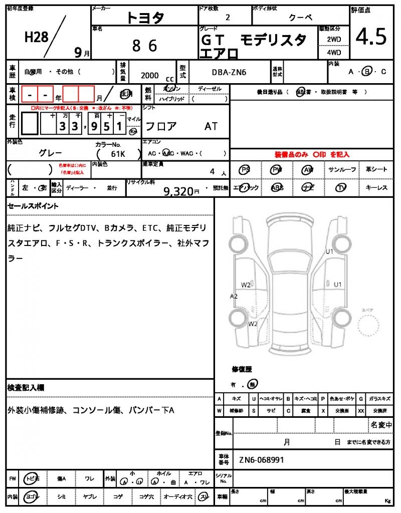 Model code | DBA-ZN6 |