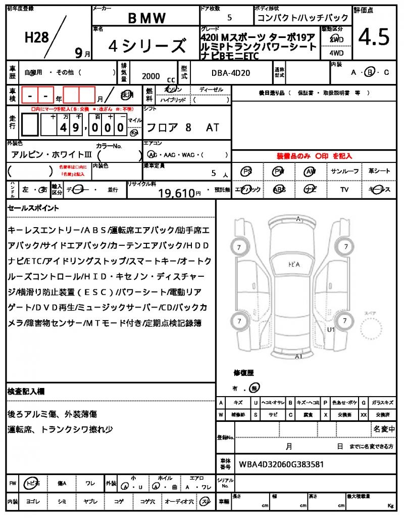 VIN/Serial No. | WBA4D32060G383581 |
