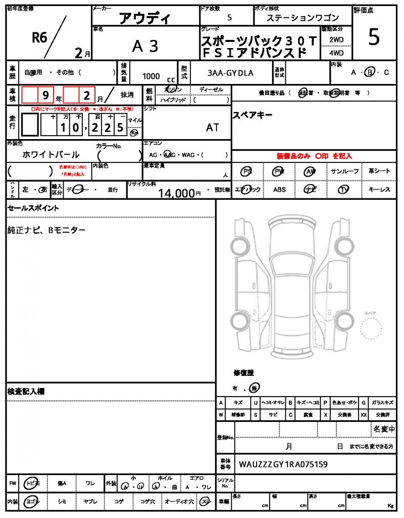 VIN/Serial No. | WAUZZZGY1RA075159 |