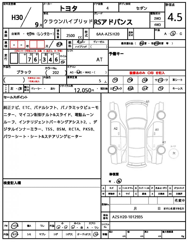 VIN/Serial No. | AZSH20-1012935 |