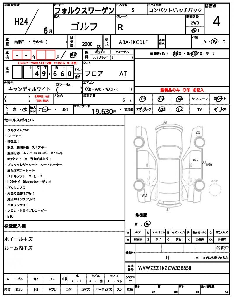 VIN/Serial No. | WVWZZZ1KZCW338858 |