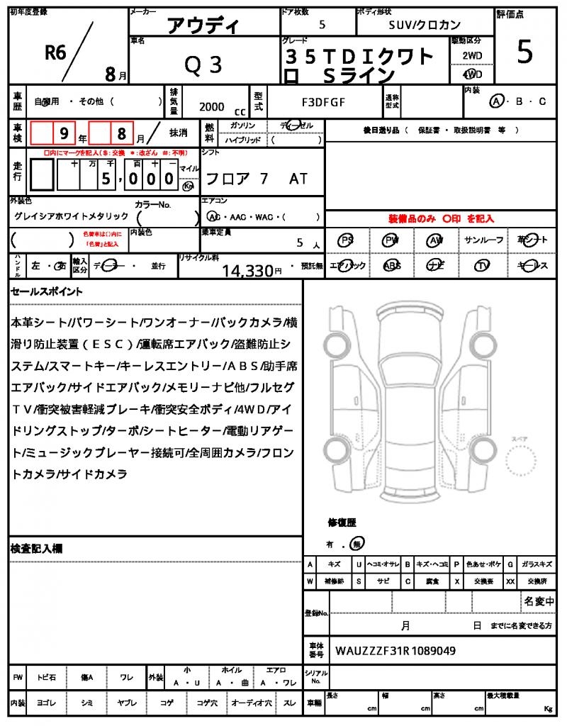 VIN/Serial No. | WAUZZZF31R1089049 |