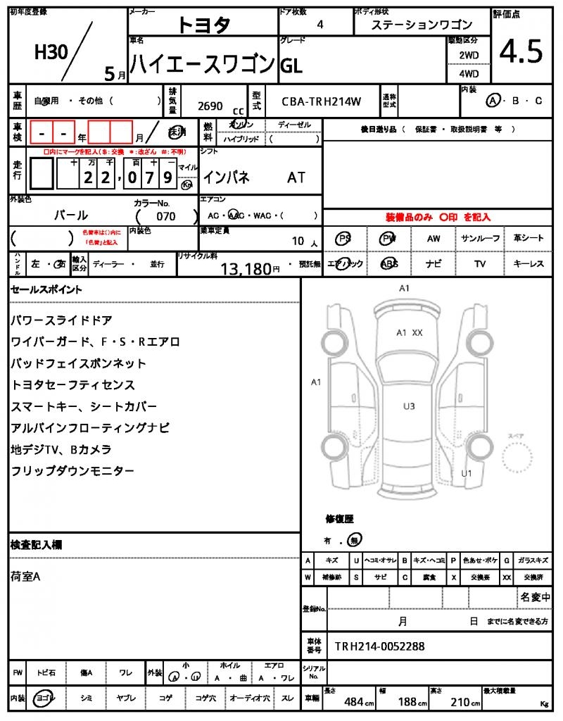 VIN/Serial No. | TRH214-0052288 |