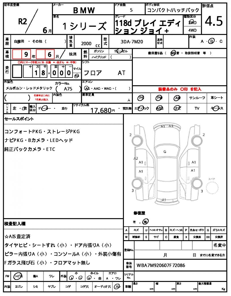 VIN/Serial No. | WBA7M920607F72086 |