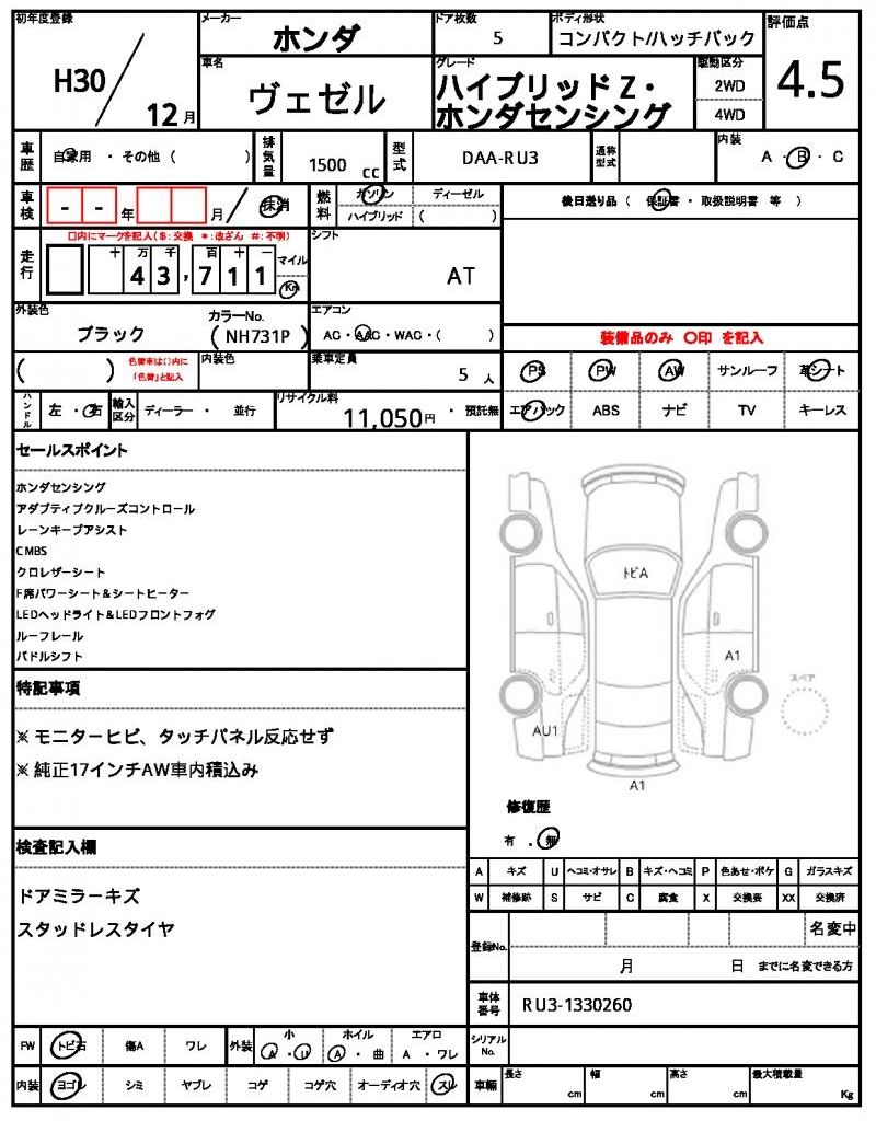 VIN/Serial No. | RU3-1330260 |