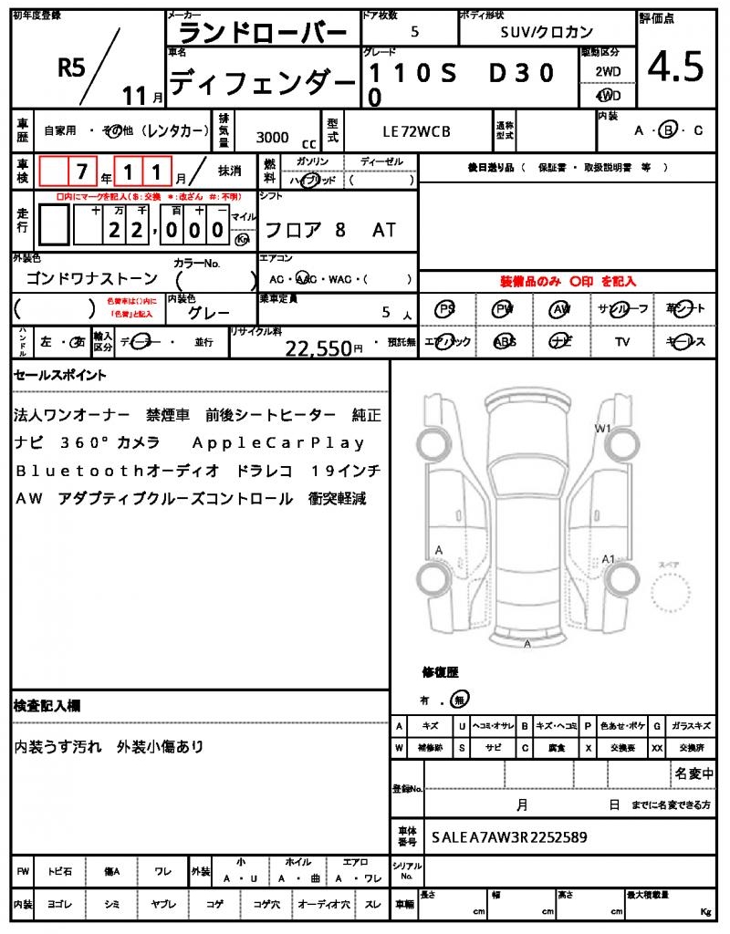 VIN/Serial No. | SALEA7AW3R2252589 |