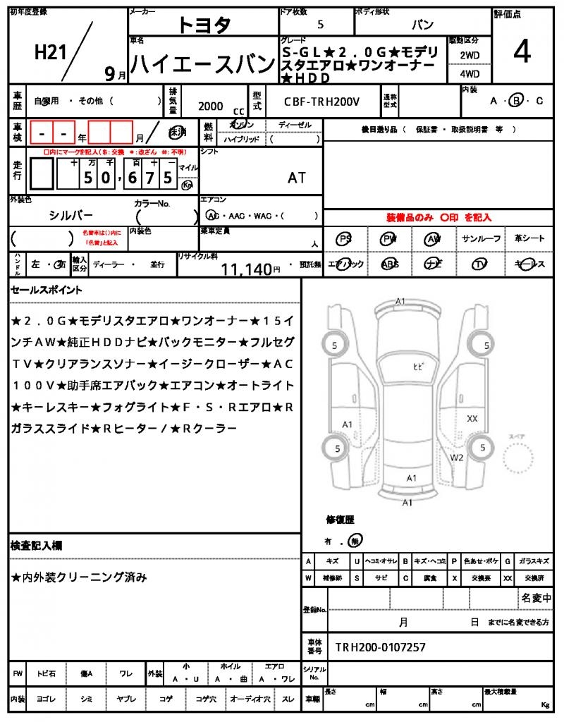 VIN/Serial No. | TRH200-0107257 |