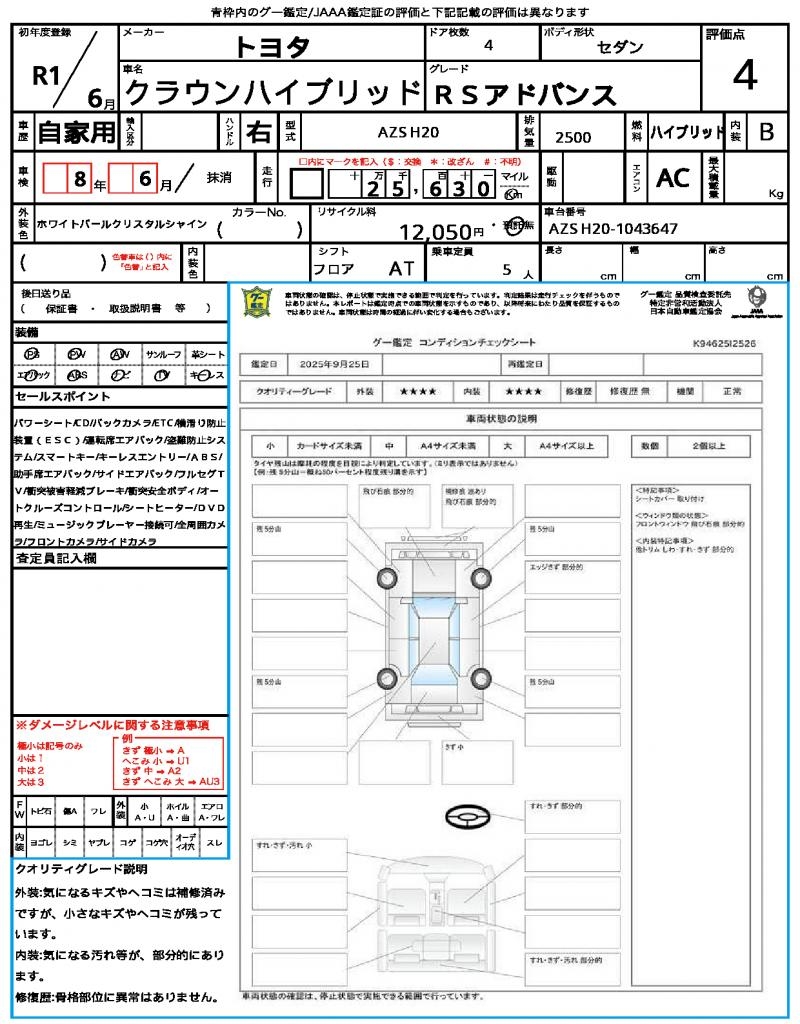 VIN/Serial No. | AZSH20-1043647 |