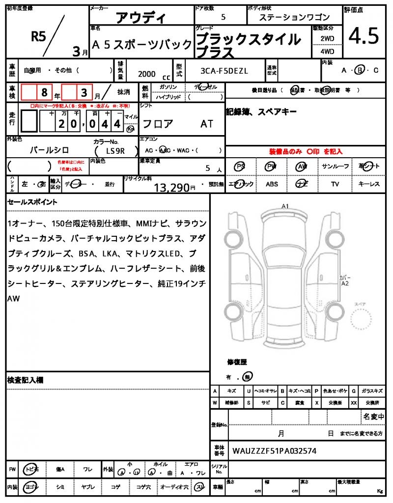 VIN/Serial No. WAUZZZF51PA032574