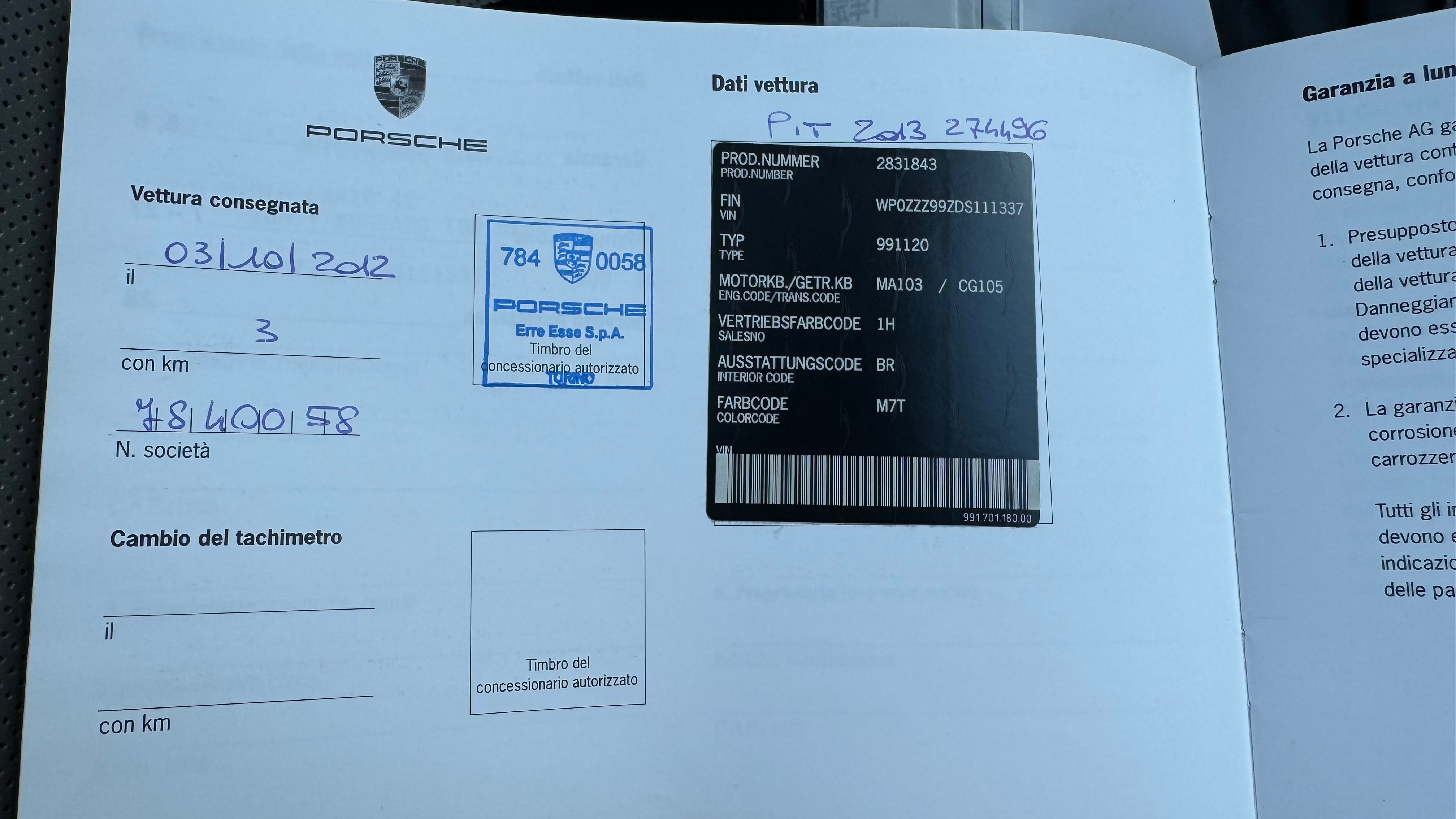 VIN/Serial No. | WP0ZZZ99ZDS111337 |