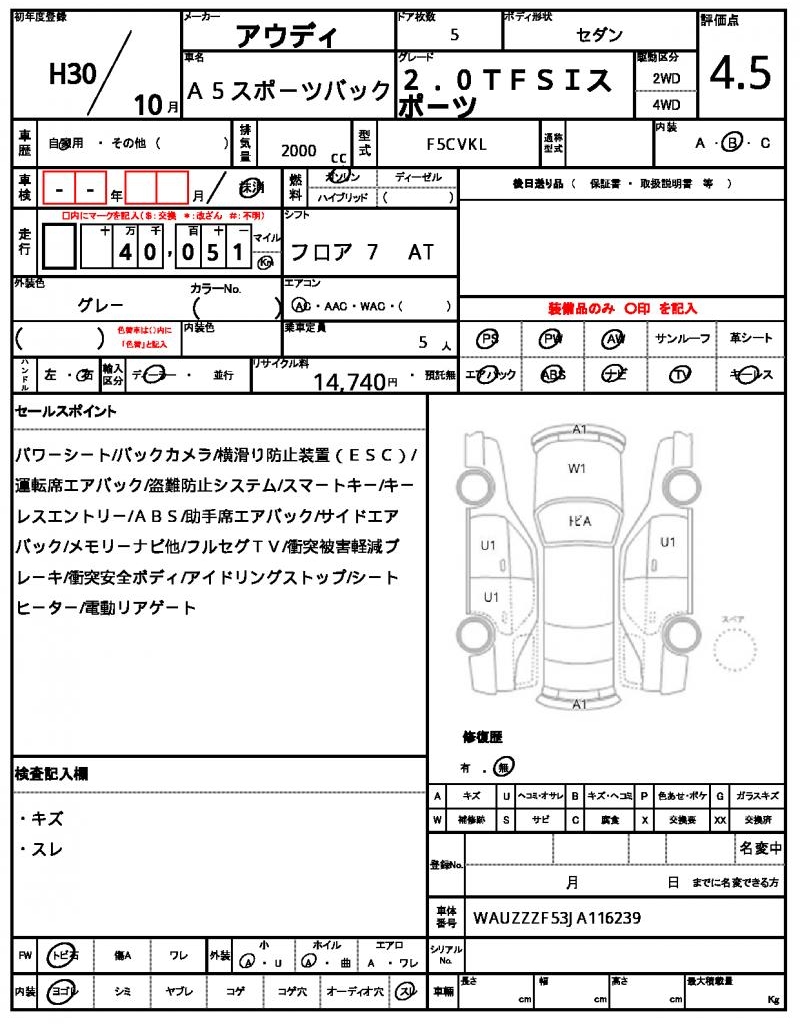 VIN/Serial No. | WAUZZZF53JA116239 |