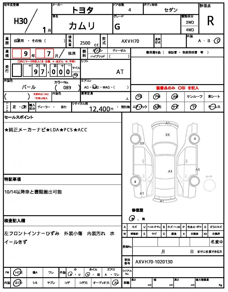 VIN/Serial No. | AXVH70-1020130 |