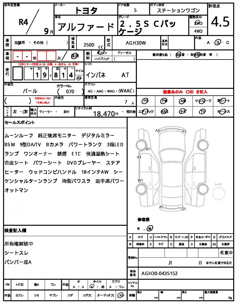 VIN/Serial No. | AGH30-0435152 |