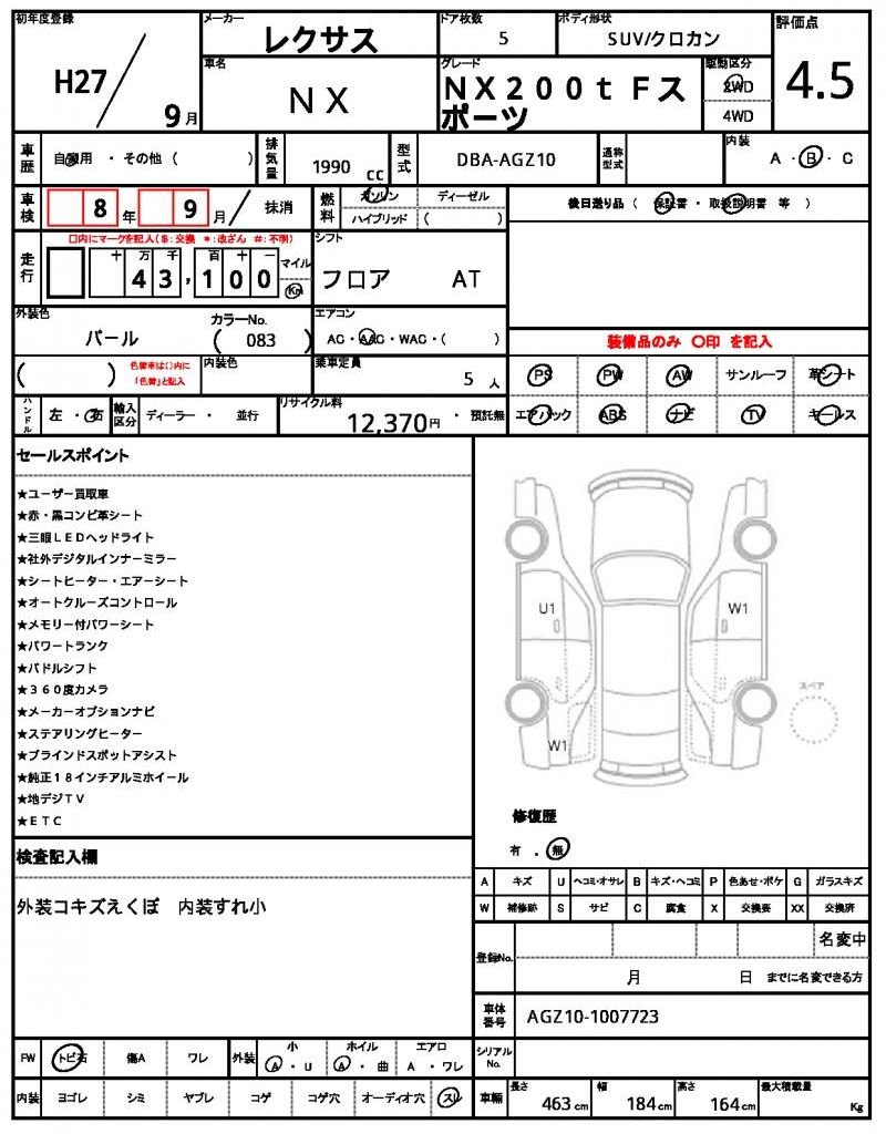 VIN/Serial No. | AGZ10-1007723 |