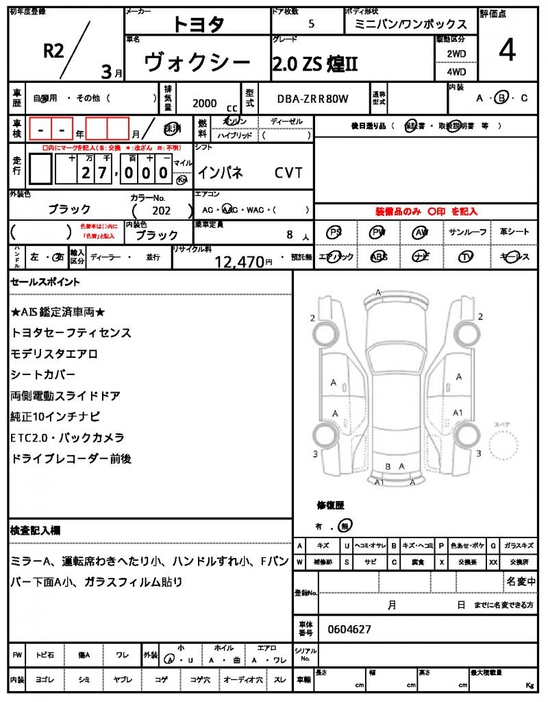 Model code | DBA-ZRR80W |