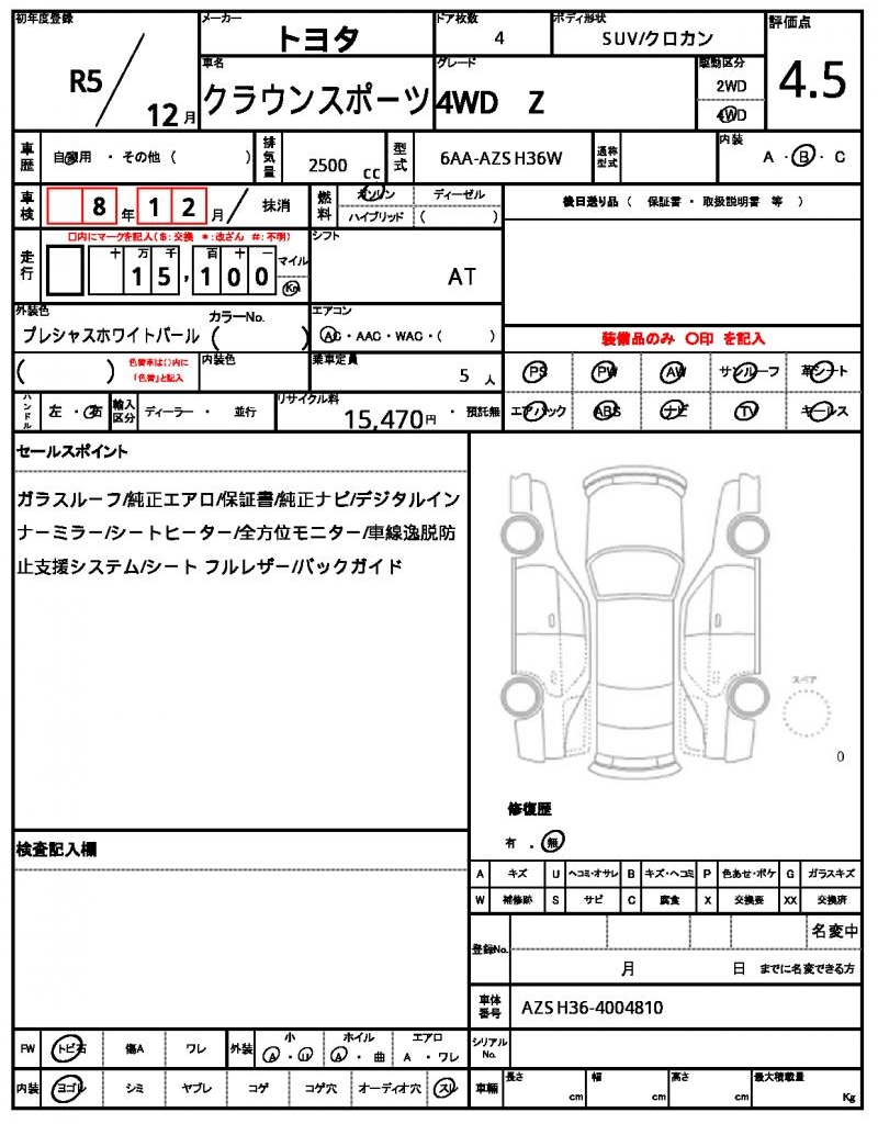 | VIN/Serial No. | AZSH36-4004810 |