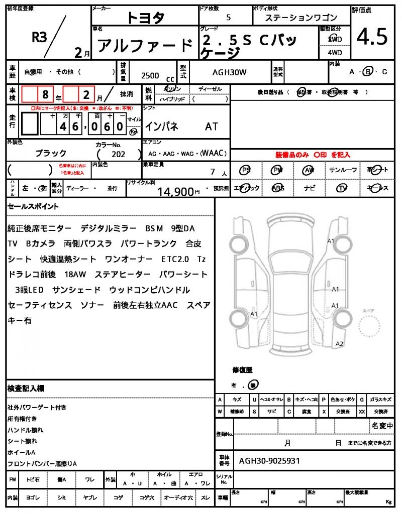 VIN/Serial No. | AGH30-9025931 |