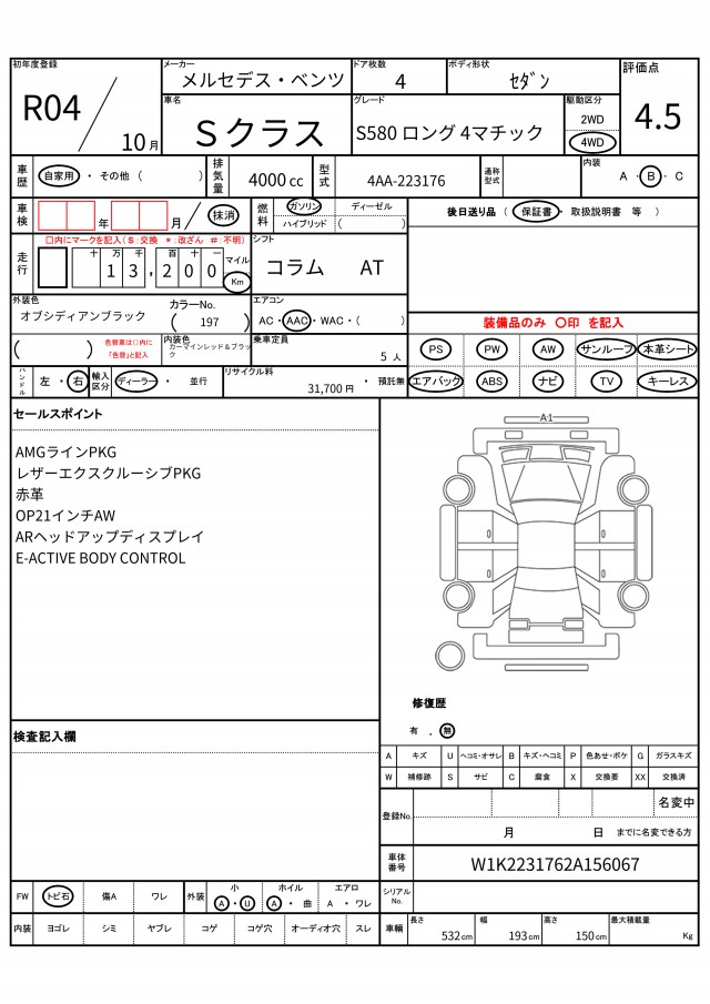 VIN/Serial No. W1K2231762A156067