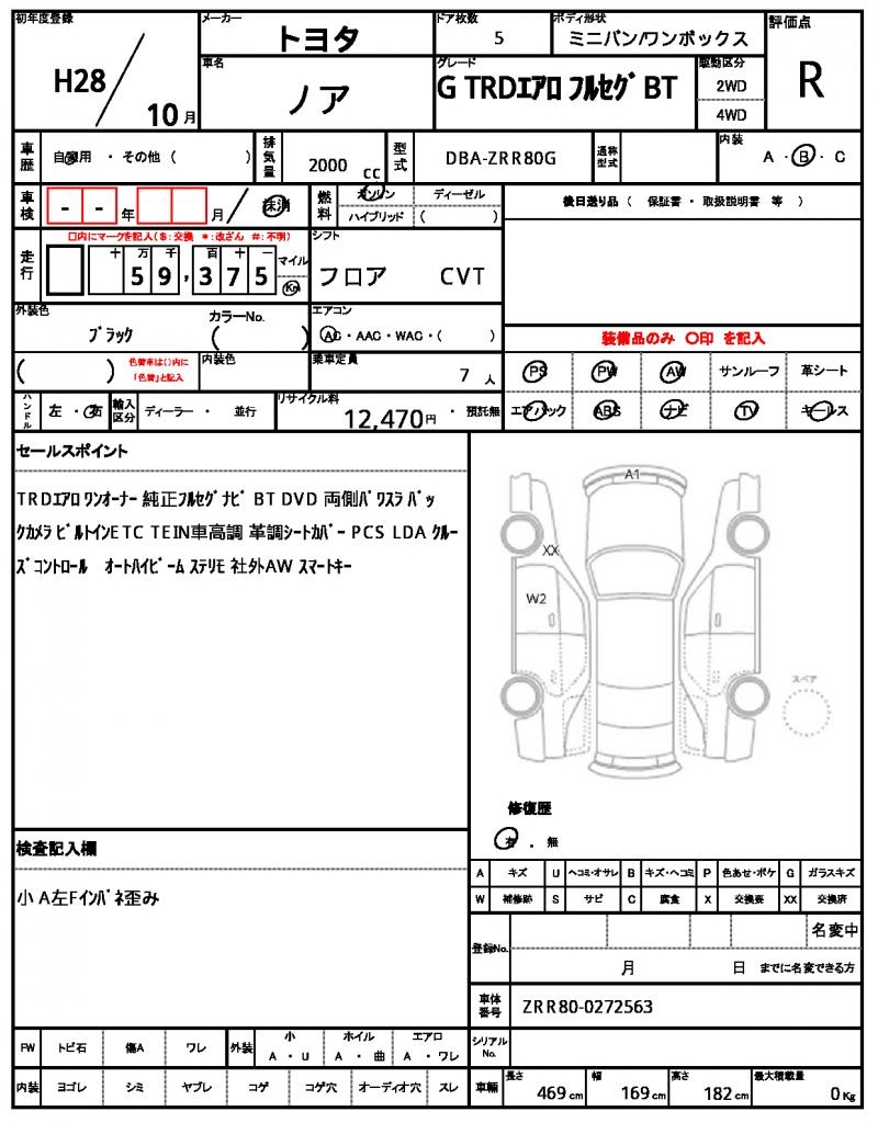 Model code | DBA-ZRR80G |
