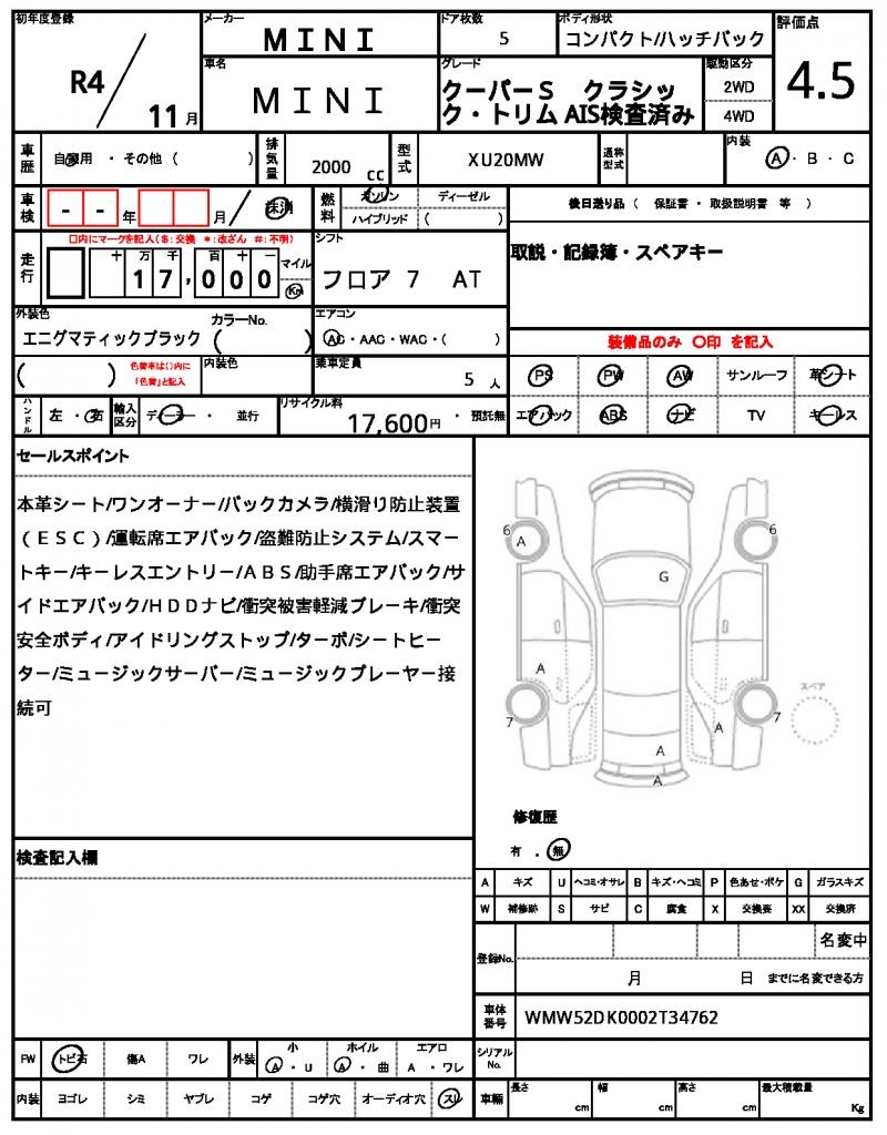VIN/Serial No. | WMW52DK0002T34762 |