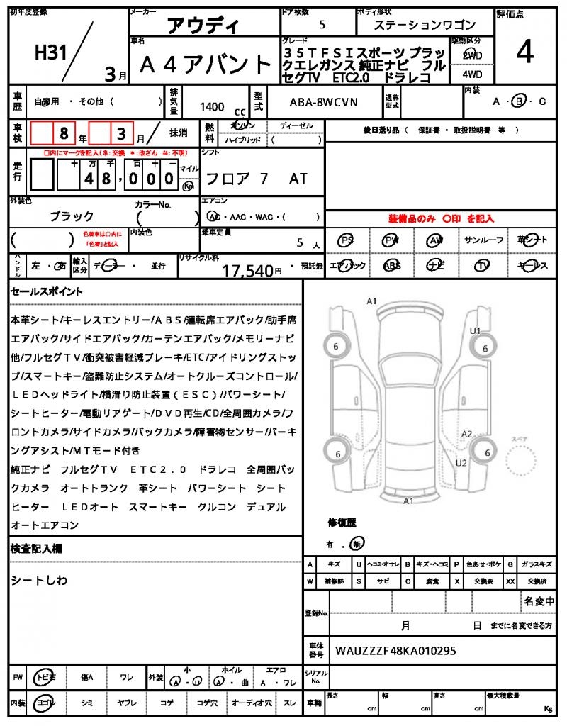 VIN/Serial No. | WAUZZZF48KA010295 |