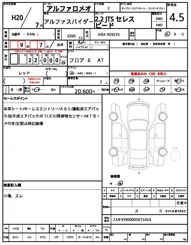 | VIN/Serial No. | ZAR93900005015424 |