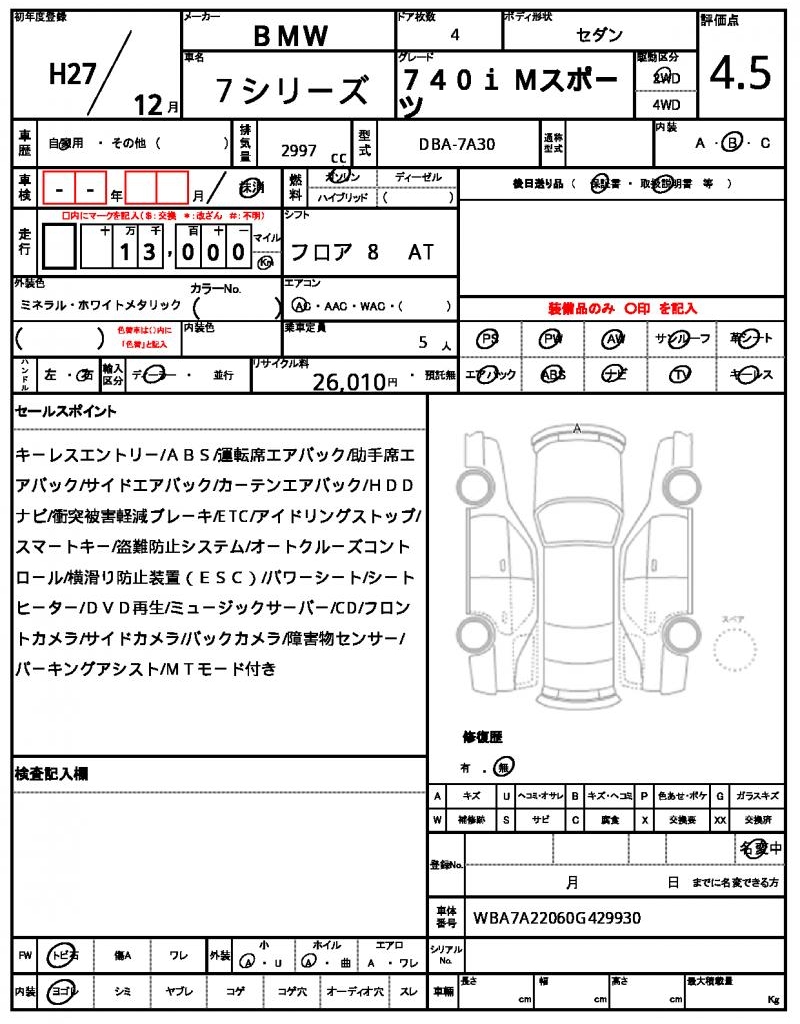 VIN/Serial No. | WBA7A22060G429930 |