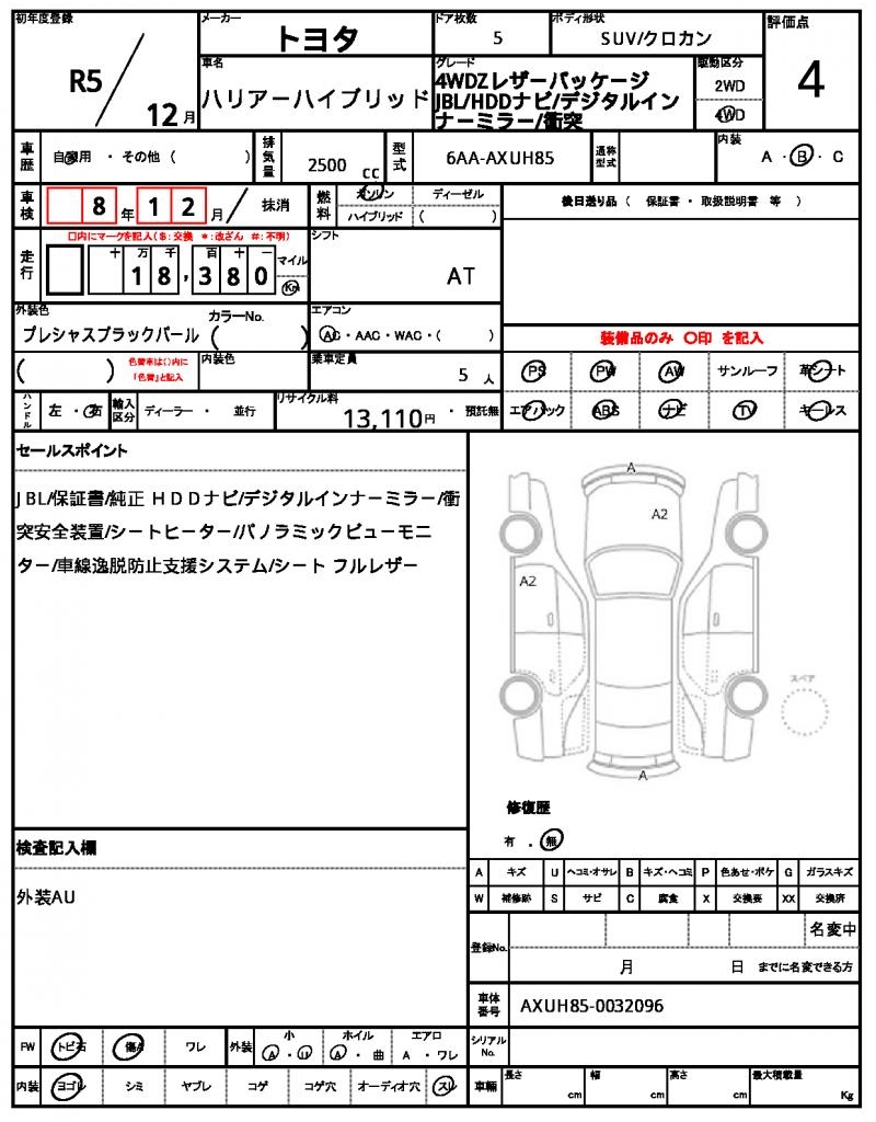 VIN/Serial No. | AXUH85-0032096 |