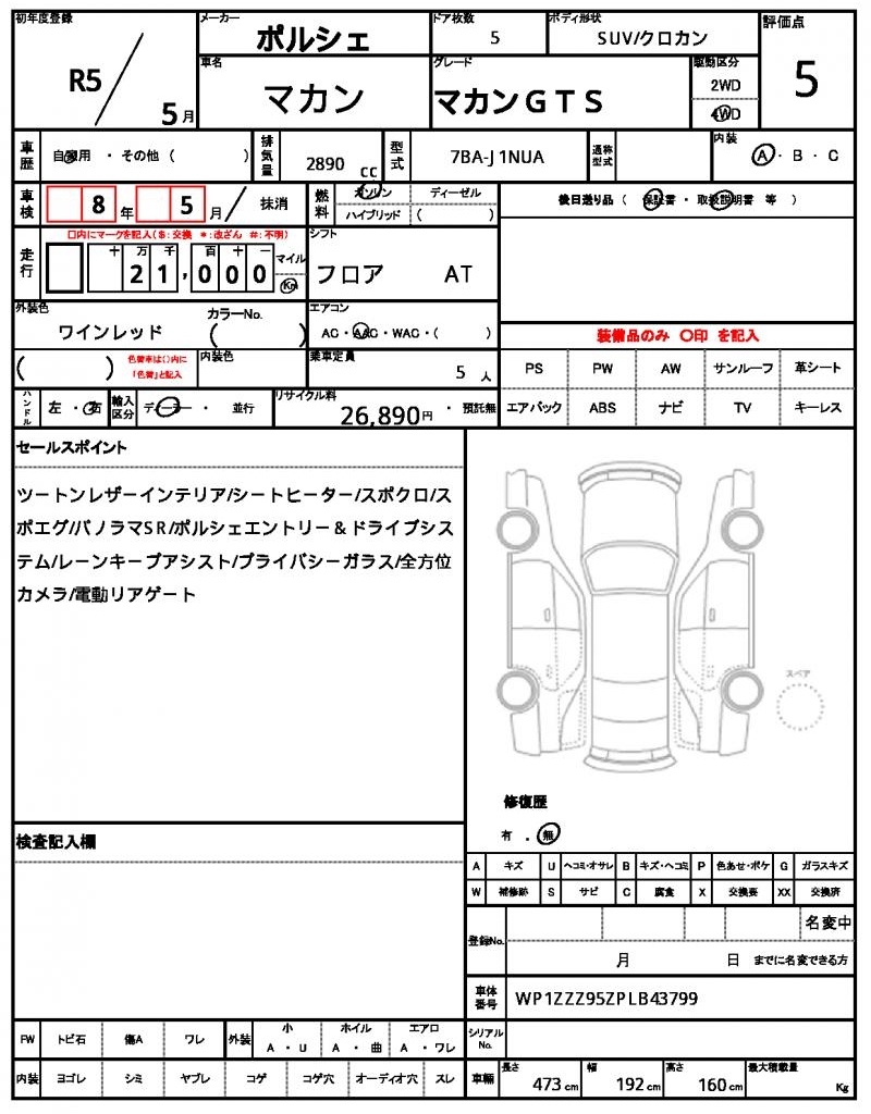 VIN/Serial No. | WP1ZZZ95ZPLB43799 |