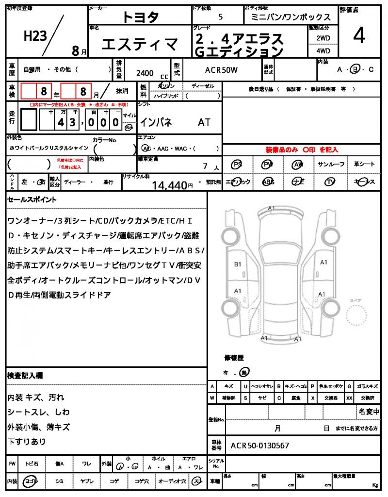 | VIN/Serial No. | ACR50-0130567 |
