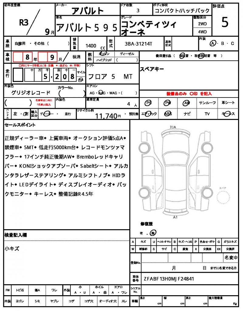 VIN/Serial No. | ZFABF13H0MJF24841 |