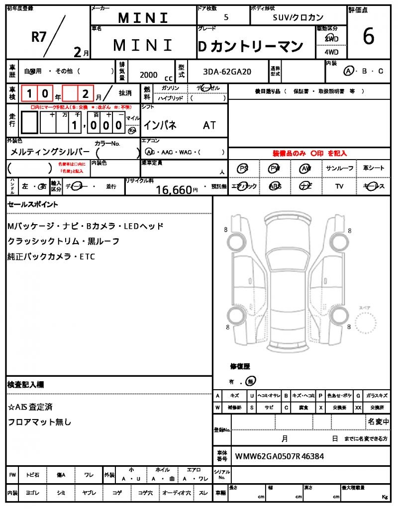 VIN/Serial No. | WMW62GA0507R46384 |